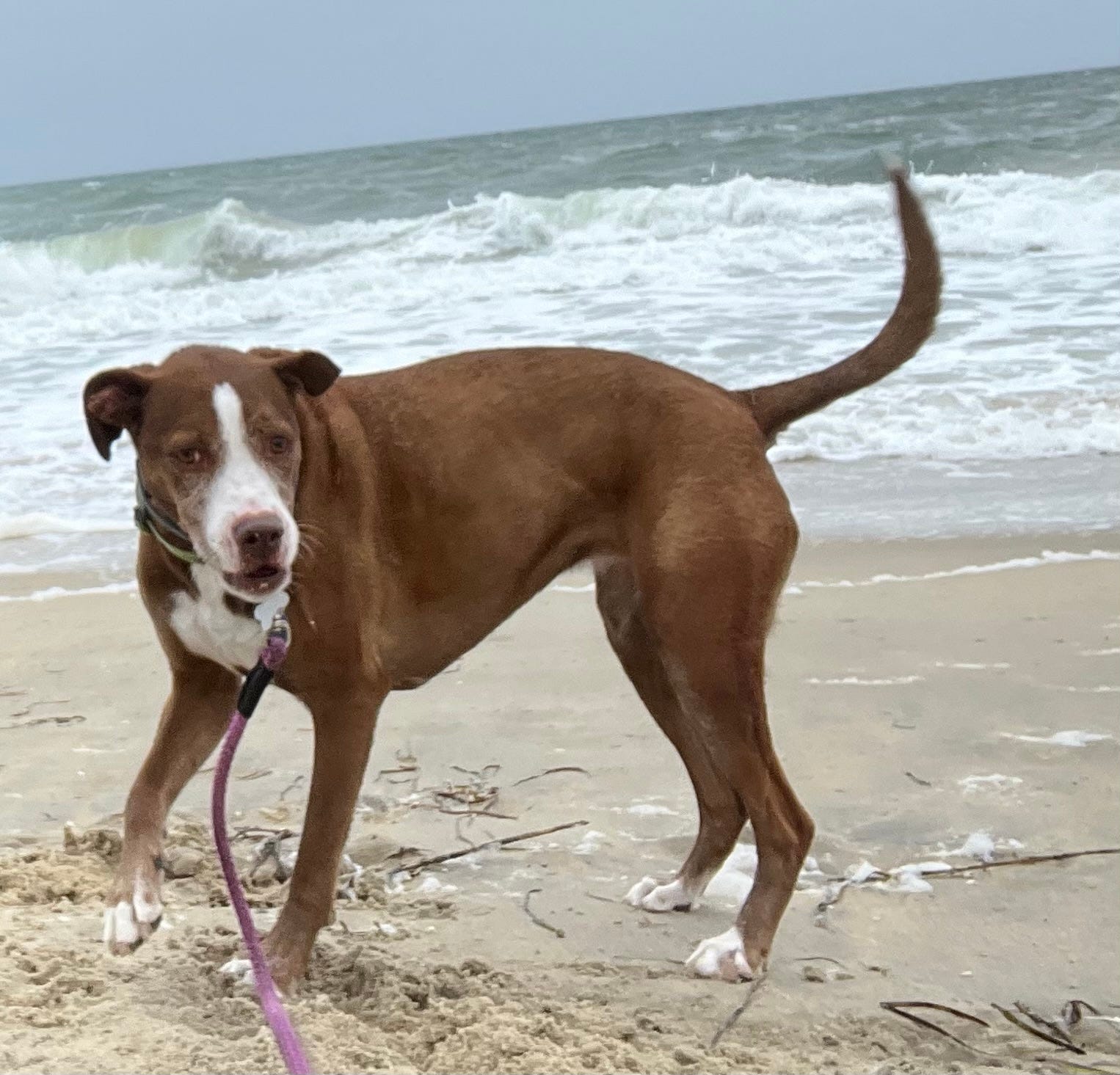 On the first glance of the Atlantic Ocean Tuesday, she charged into the sea only t find herself completely surrounded by the wake. She repeated this a few times before retreating farther up on the beach.