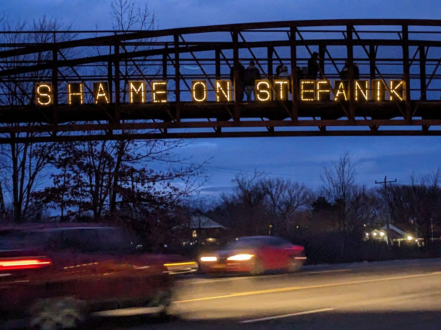 The Light Brigade was at it again Friday night with another message for Rep. Elise Stefanik that I agree with 100 percent. After her recent actions condoning sexual assault, she should be ashamed.