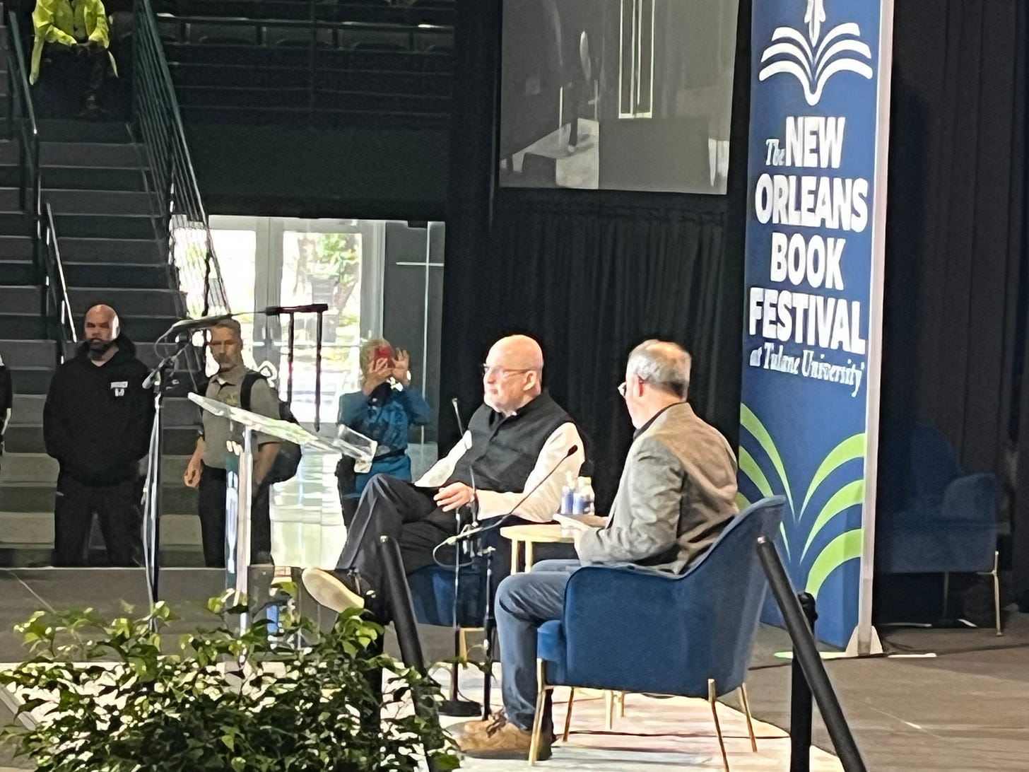 And there was Rushdie standing there center stage being embraced by the New Orleans crowd.